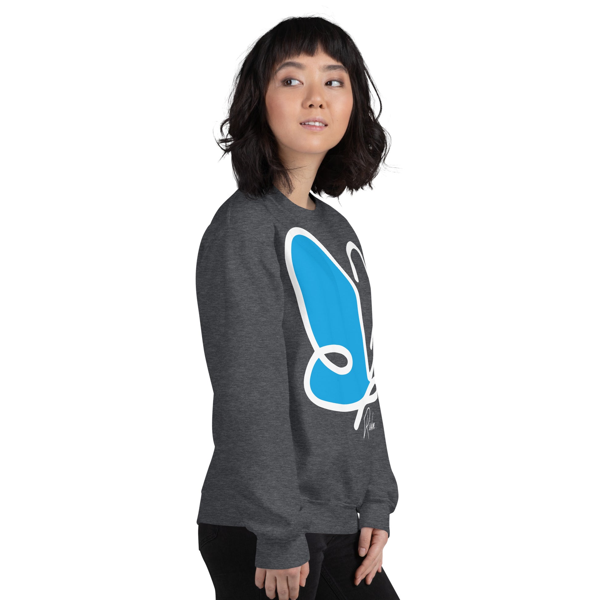 This design features a bold, minimalist butterfly crafted with smooth, sweeping lines. The butterfly's wings are formed by a large, vibrant blue shape outlined in white, creating a striking contrast against the background. Its simple yet artistic form evokes a sense of elegance and modernity, while maintaining a playful, creative energy. The word "Richmond" is delicately written in a subtle cursive at the bottom, adding a touch of sophistication without overpowering the central image. This clean and stylish design makes a statement with its graceful lines, perfect for those who love artful simplicity and bold colors.