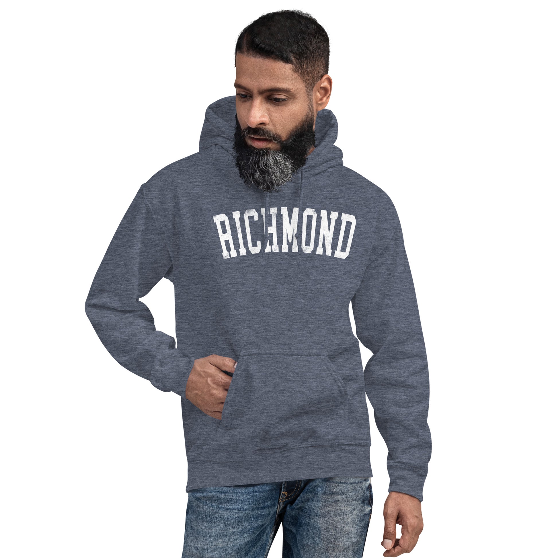 Show off classic, timeless style with this Richmond design. Featuring the word "Richmond" boldly displayed across the chest in large, arched block letters, the design evokes a vintage collegiate vibe. The slightly distressed texture of the white lettering adds a worn-in, retro feel, giving it character and charm. The minimalistic yet bold design focuses on simplicity, letting the school name take center stage.
